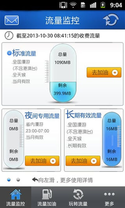 流量加油站是中国电信江苏公司推出的一款智能手机客户端软件,向手机用户提供运营商官方的流量专属服务,如精准流量监控、便捷流量加油、互动流量活动、个性流量攻略等,助您尽情遨游天翼3G。