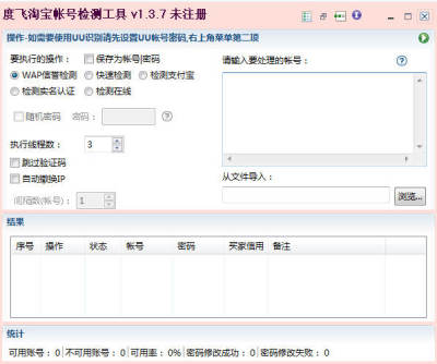 度飞淘宝帐号检测工具是一款由度飞软件推出的淘宝平台买家信息查询工具,支持多线程批量检测;输入或者导入帐号信息,就可以快速自动检测,操作非常简单,需要的朋友不要错过,快下载试试吧!