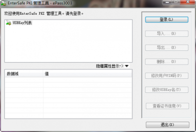 epass3003管理工具可用于对epass3003 USB KEY进行管理和安装,具备导入、导出、删除功能、修改USB KEY名、查看证书信息等功能,使用该产品的用户建议安装此软件,使用前请先登录。
