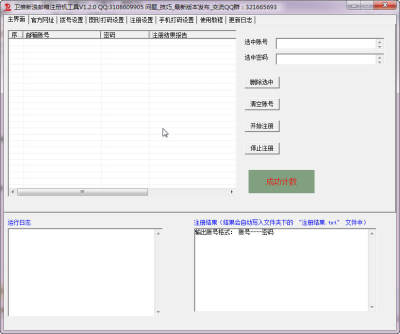 设置成功后,点击开始注册即可,注册结果会自动写入文件夹下的注册结果txt文本中(格式为帐号----密码)