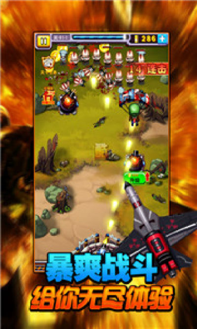 按住手机屏幕左右扫射即刻消灭大批四方袭来的外敌,点击更换武器,滑动来控制方向。