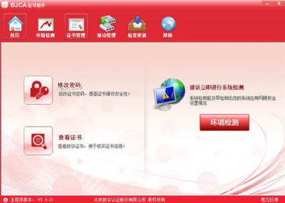 BJCA证书助手是一款能够帮助北京的用户进行数字验证的软件应用,是北京数字认证股份有限公司推出的数字证书管理工具,支持修改证书密码、查看证书、环境检测、证书管理以及检查更新等等功能,欢迎下载体验!
