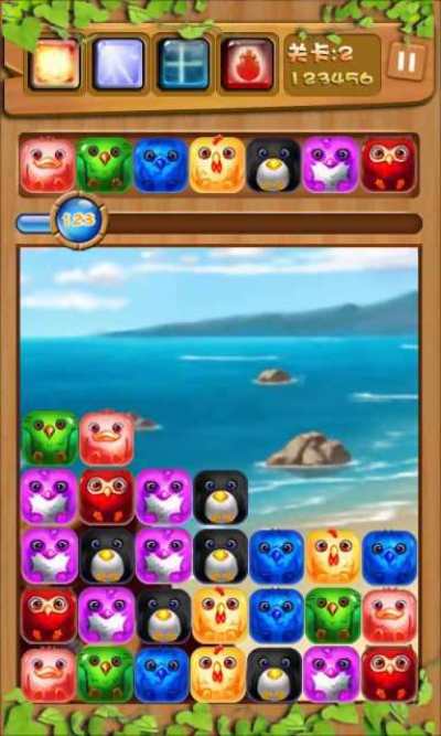 这是一款很经典的消除游戏,可爱清新的画面,轻松乐趣的背景音乐,5种不同的场景选择,活泼可爱的游戏主角-可爱的小鸟们陪你度过无数的闲暇时间。