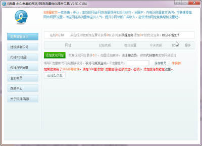 今天小编为大家介绍一款免费刷流量的软件,适用于网站、网店等互相刷流量,提升人气;软件绿色无需安装,且支持免费使用,功能强大 ,是网店店长及网站进行营销推广的好帮手;除此以外,软件还有代挂PC/APP流量的功能,挂机还能挣积分,需要的朋友不要错过,快下载体验一下吧!