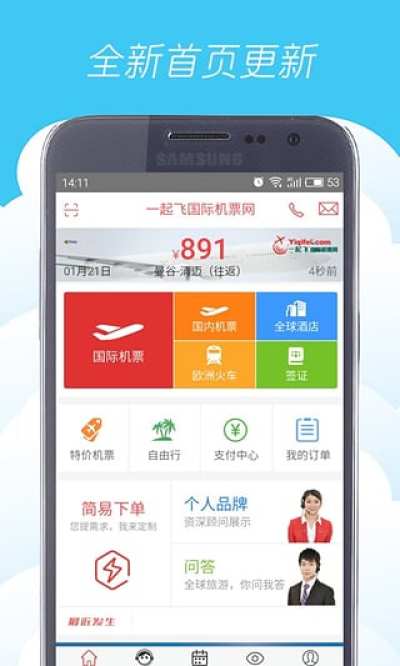 一起飞APP是一款由国际机票网推出的官方手机客户端应用,买国际机票还是挺方便的,基本上全球各个国家的机票都可以买,就是略有点贵。