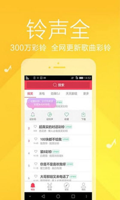 2.升级支持100+个 精细铃声分类、20+套铃声套装。