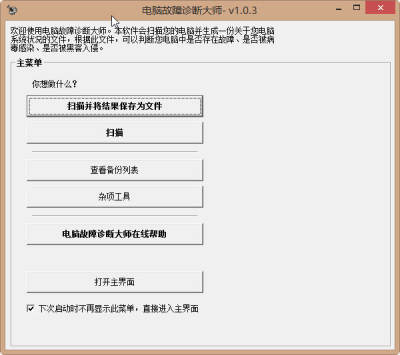 本软件会扫描您的电脑并生成一份关于您电脑系统状况的文件,根据此文件,可以判断您电脑中是否存在故障,