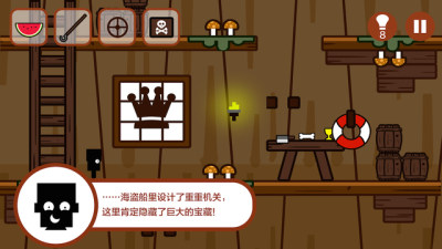 您需要沿途一路破解各种机关、谜题、探索、击败可怕的怪兽、和骷髅人对话、玩各种小游戏……最终在海盗遗迹中找到万分隐秘的终极宝藏,据说只得万分之一便富可敌国的稀世至宝。