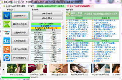 可快速获取迅雷、爱奇艺、优酷、乐视、芒果TV、PPTV的会员
