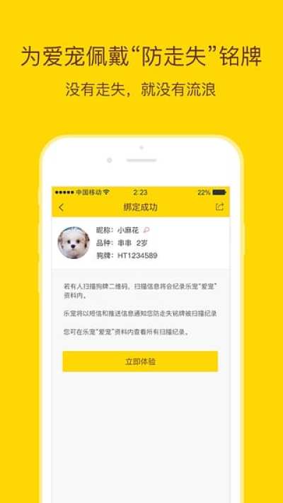 特色3:防走失。爱宠的“身份证”,爱宠走丢扫码定位;