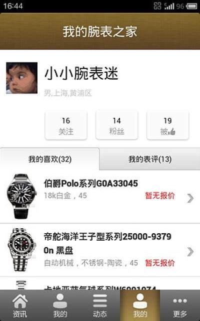 4、个人中心:陈列关注腕表,表友相互了解。