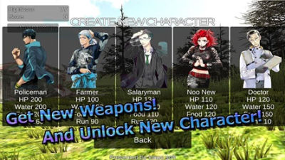 最初的时候玩家持有最小的食物和武器到达废墟,在废墟的城镇,在哪里都会获得原住民残留的水和食物,还有武器。使用打到丧尸获得的银币,调达武器和食物,解锁新角色,驱除丧尸。