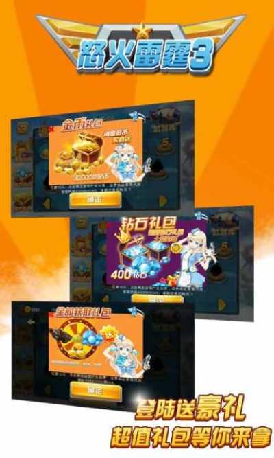 风靡全球,双榜第一怒火雷霆第3D!不一样的雷霆战机!精美的画质,激爽的打击感,在站桩式玩法的基础上进行了创新,打破传统玩法,暴爽来袭!超帅战舰等你驾驭,进游戏就送豪华大礼包!更有超靓空姐跟你一起玩耍哦,开始打飞机吧!