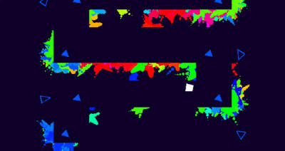 INK游戏中玩家将会扮演一个小白块,他有三个能力:空中二段跳、爬墙跳以及甩墨水。而我们需要做的就是利用这三种能力,让小白块顺利通过每个独立关卡。《INK》中每一关地形在最开始都是完全隐藏的,随着小白块在跳跃时向外面甩出墨水,地形会逐渐变得清晰。
