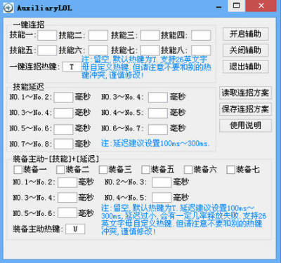 注:留空,默认热键为T.延迟建议设置100ms~300ms,延迟过小,会有一定几率释放失败.支持26英文字母自定义热键.但请注意不要和别的热键冲突,谨慎修改!