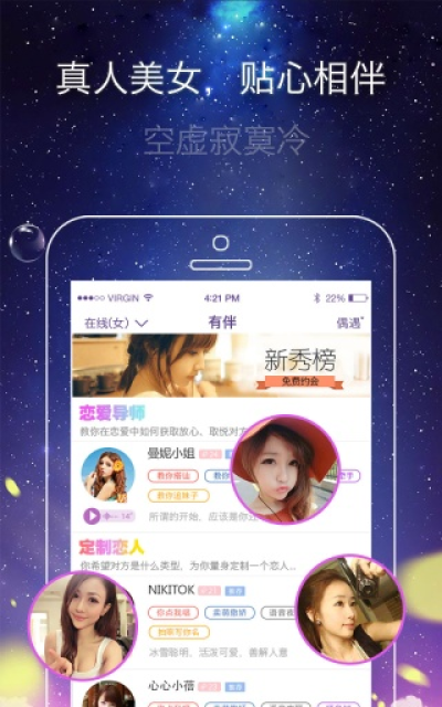 在有伴认证通过的90%以上都是在校学生公司白领,领家软妹,成熟御姐,温柔暖男,搞怪大叔,不管你是失恋期,空窗期,还是寂寞孤单,在这里总有人给你全方位的关怀和温暖。