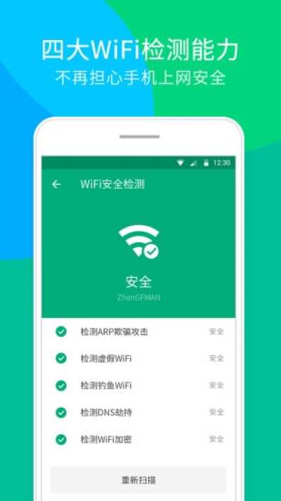 1、免费WiFi热点分别来自腾讯WiFi开放平台、三大运营商等等,自带wifi安全扫描功能,可以确保非僵尸、非钓鱼、非盗号。