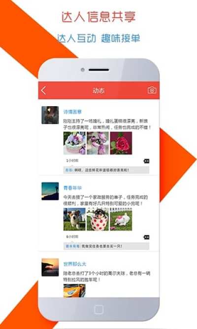 达人和任务主都可以通过平台发布动态,他们之间互相关注,可以看见彼此信息,第一时间掌握即时信息,完成交易。