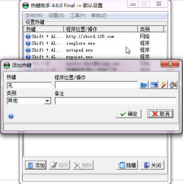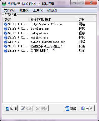 热键助手可以方便的为你建立你的自定义热键.·有了它,你可以为你常使用的文件,程序或者网址定义热键(快捷键).·以便更加方便的打开相关程序,大大提高效率。