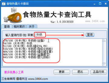 食物热量大卡查询软件提供最常用食物热量大卡查询,包括(五谷类/豆类 蔬菜类 水果类 肉类 蛋类 水产类 奶类 油脂类 糕点 小吃 糖类 饮料类 菌藻类 其它类)。