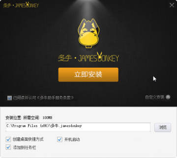 点击自定义安装,选择软件安装目录,选择是否开机启动,是否添加桌面图标及任务栏快捷方式