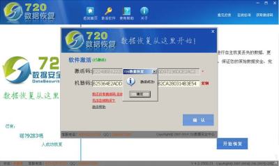 安装并运行原版本的720全功能数据恢复软件和注册机
