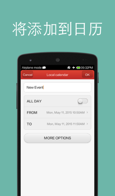将事件添加到 Android 系统日历,谷歌日历或日出日历。