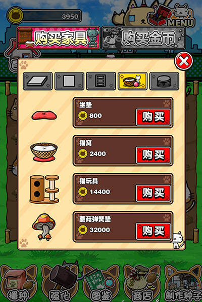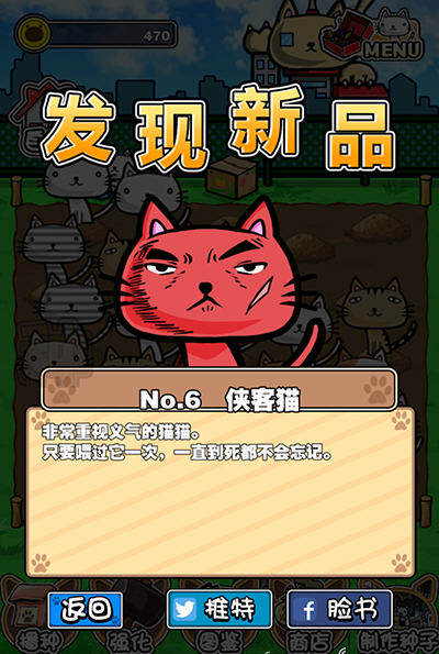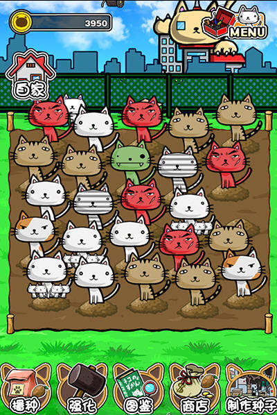 《猫猫的田园》是一款画风魔性十足的喵星人种田游戏。玩家可以通过点击容器制造种子,将这些种子播种到田地当中,经过一段时间收获各种可爱的猫咪及金币。猫咪们可以放入房间中饲养和观察,金币可用来升级设备和购买房间设施等,内容颇为丰富,刚开始进入游戏时可能要稍微连一下网络。铲屎官们这下有福了,多多收集图鉴吧!