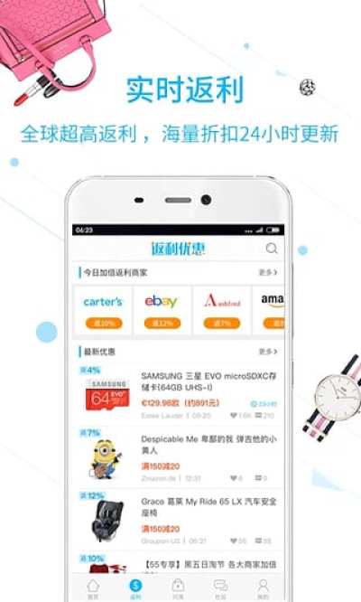 2、实时返利:全球超高返利 海量折扣24小时更新