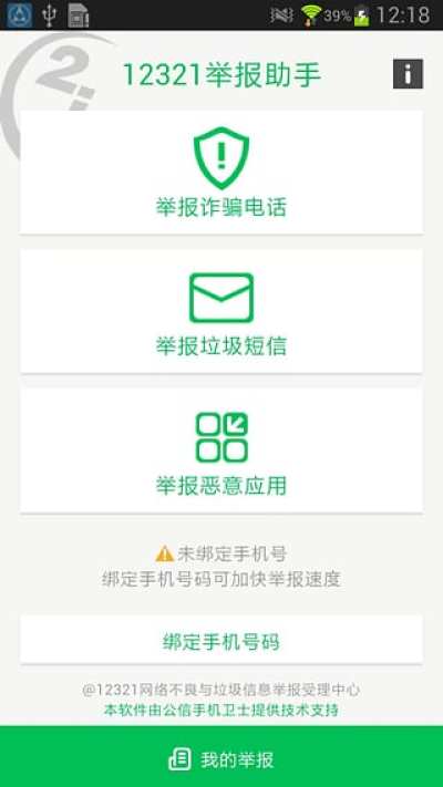 《12321举报助手》是工信部12321网络不良与垃圾信息举报受理中心发布的一款APP,旨在帮助移动互联网用户更加方便地举报不良与垃圾信息问题,是12321举报和查询功能在移动端的延伸。功能包括批量举报垃圾短信、不良APP及查询举报处理结果等。