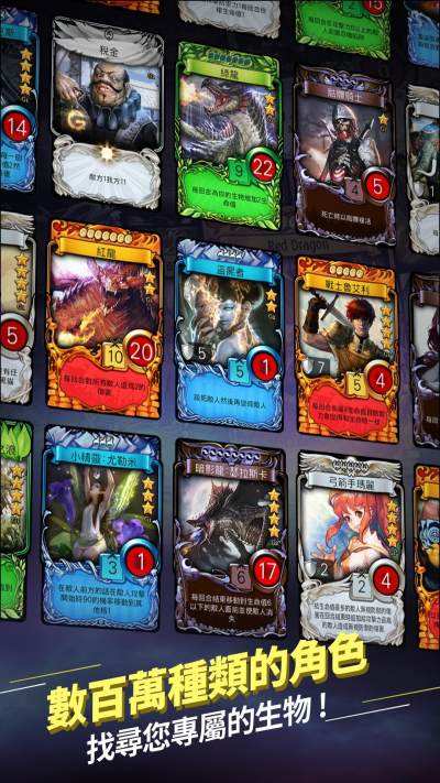 众多卡牌: 透过丰富又有趣的卡片,创建特别的战略!