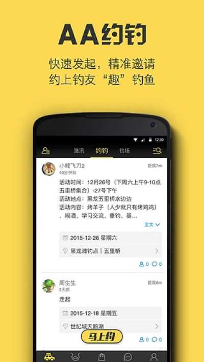 AA约钓:快速发起,精准邀请,相约出钓,约上钓友一起“趣”钓鱼。