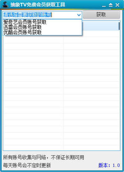 可支持获取爱奇艺会员帐号、迅雷会员帐号、优酷会员帐号