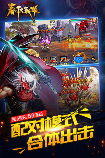 《春秋战雄》是一款定位时尚的新武侠手游,改编自香港漫画《春秋战雄》,由香港黄玉郎大师正版授权。原著剧情、场景、人物神兵100%还原。首创即时战术策略对抗,见招拆招。穿越春秋皇朝,美人后宫全收录。360度炫酷战斗画面,必杀技爽翻天。组队地下城,即时全服联赛竞技、宗派战等多种互动任性战。