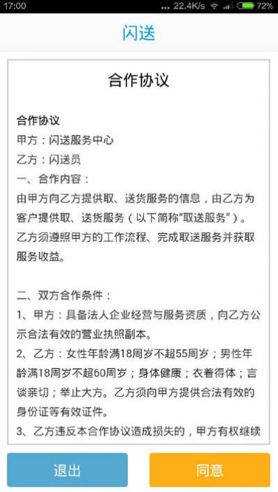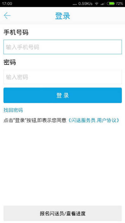 2、进入app点击闪送员报名按钮提交个人资料进行报名;