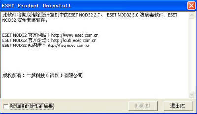 “ESET Product Uninstall.exe”二版科技出品,可卸载:ESS/EAV 2.7/3.0