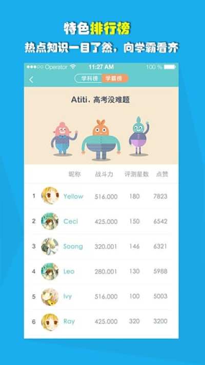 【劳逸结合】点亮大学、各类勋章获得、特色排行榜、给学霸留言做好友,等级提升还有机会获得积分、话费等礼品,让学习变得不再枯燥。