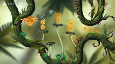 探索发现,探索手绘关卡中的大自然灵感。创新,以一种简单而不失优雅的方式使用风控制水滴。挑战,找到并催开所有花朵,用最短的时间赢得最高分数。