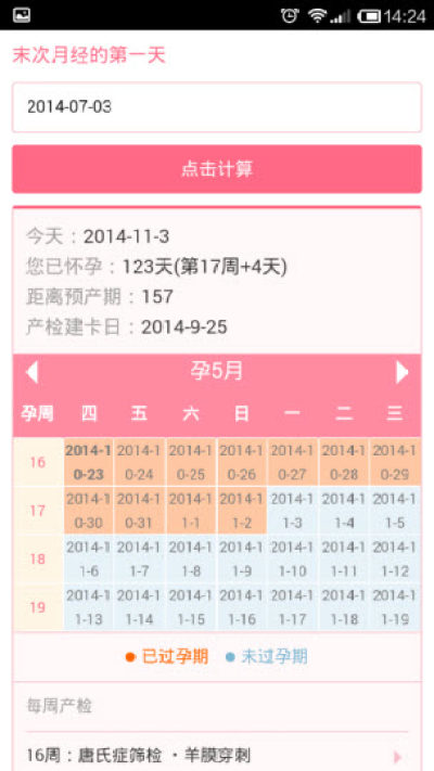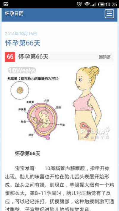 怀孕日历表可自动预算和跟踪预产期,自动显示你今后每次的产检日期,点击更可以查看到怀孕每天的专业指导实时,随时掌握自己和胎宝宝每天的状态。