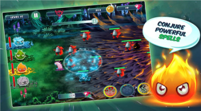元素大战怪物(Elements vs. Monsters)是一款非常好玩的策略游戏!咋一看游戏的场景,有点模仿《植物大战僵尸》的嫌疑,但是玩起来就会发现和《植物大战僵尸》有很大的不同!游戏中玩家要在控制各大元素精灵来阻挡入侵的怪兽,通过点击来释放各自的元素攻击,玩起来会非常忙碌哦!