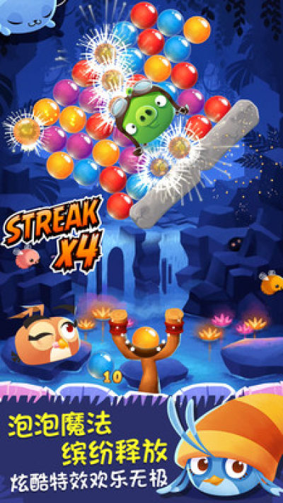 !拿起弹弓,匹配、爆掉彩色泡泡,解救小怪物,弹爆坏猪猪!