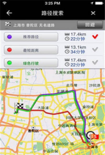 多路径选择:最短时间,更短距离,节能路线 ?交叉路口检索,地图上点选,邮政编码检索等