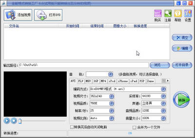 支持几乎所有流行的视频格式转换输出常见视频格式 如AVI/FLV/MKV/VCD/DVD/WMV/MP4/3GP 等格式