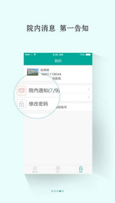 通讯录管理:职工所在医院的通讯录,可以打电话,可以聊天(文字,图片,语音,视频)