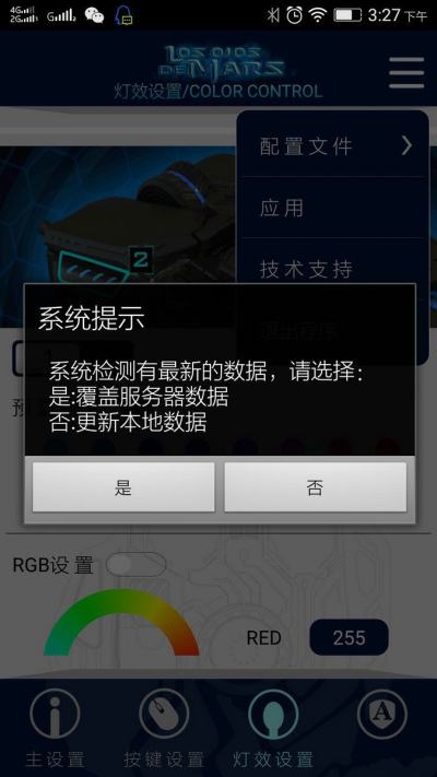 因为FM-X不像态度那样有蓝牙模块和鼠标连接,玩家FM-X的每一次改动,都是写向云端的,在设置完后选择“应用”时,会碰到这样的提示,需要按自己的需要进行选择。对于现在手机都有3G/4G网的时代,这样对于一些移动场合还是有帮助的,偶尔在APP上娱乐一下也无妨。