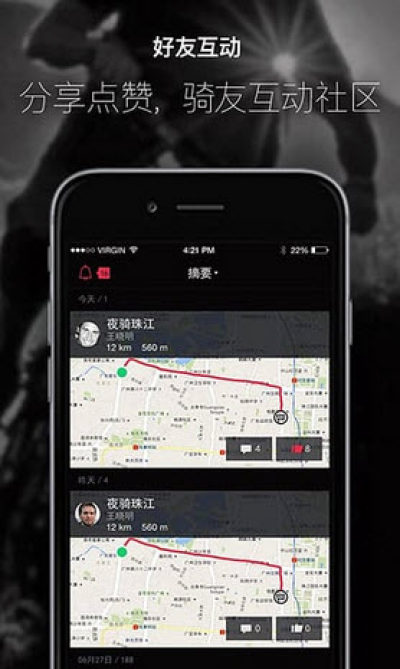 骑行心得实时分享,让更多骑友点赞、评论、加关注。