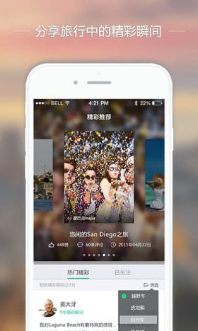 2.玩转全球:目的地太普通?全球多个目的地供您选择,每一个都够特别。想要玩得更酷?精选上百种最有腔调的全球户外探索旅行活动,每一种都够精彩!