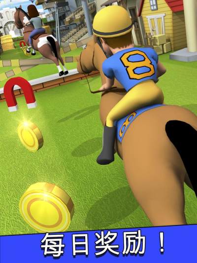 卡通赛马Cartoon Horse Riding是一款跑酷游戏,就是神庙逃亡式的那种,其中跳墙要求比高卡通赛马 Cartoon Horse Riding 热爱骑马的你快来参加无止境的比赛,收集金币不要跌倒,合理利用道具获得更多收益。