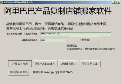 阿里巴巴产品复制店铺搬家软件,主要可用于快速复制网店商品宝贝,并上传到自己的店铺,有需要的朋友可以下载使用。