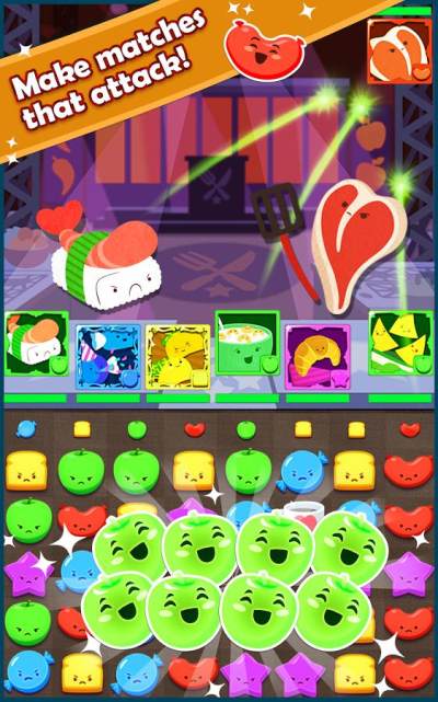 美食怪友(Cranky Food Friends)是噗呦噗呦大冒险的翻版,一款将食物萌化的有趣的消除游戏。